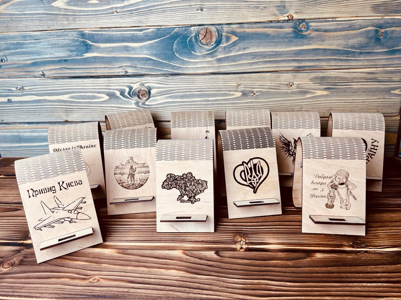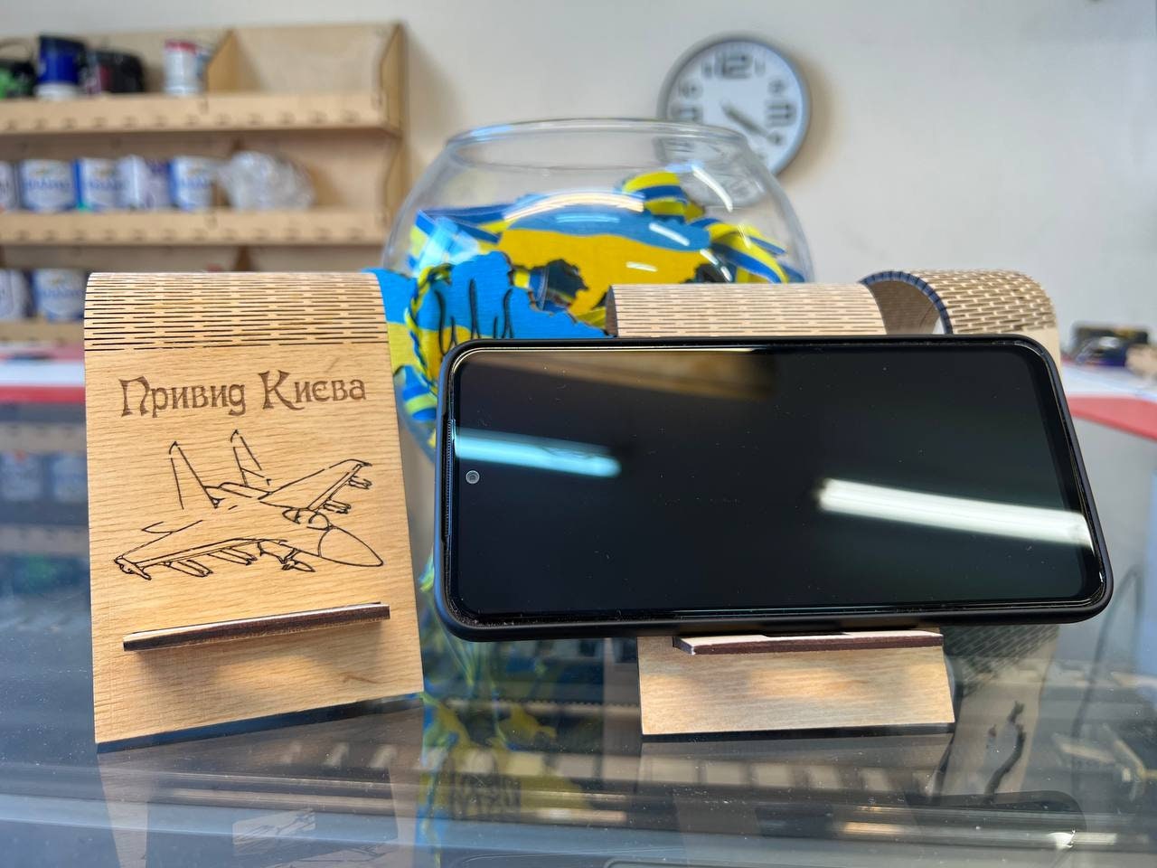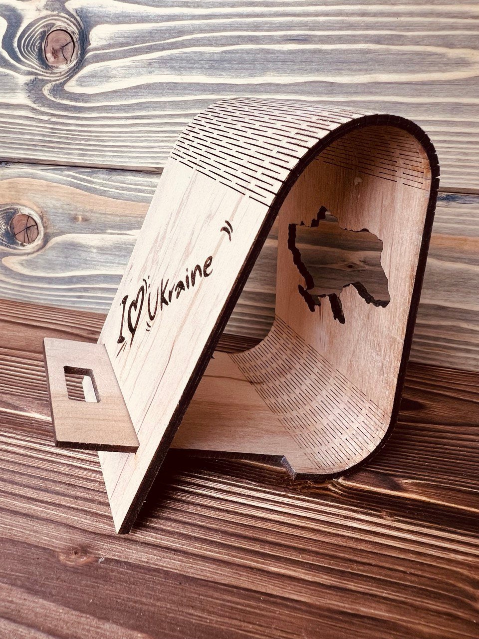 Each stand is crafted from 1,6-inch birch wood and can be stained in various colors of your choice, as showcased in the listing photos. They are foldable for easy storage and can be reassembled in seconds. Plus, they come with a convenient slot for charging your device while it's resting on the stand.