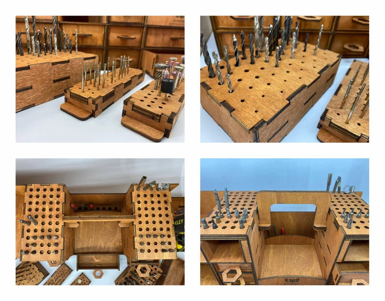 With dedicated compartments for pliers, screwdriver bits for screwdrivers (100pcs), drill bits for a drill (100pcs), milling cutters (100pcs), brushes, files, tape measure, ruler, hammer, and so much more, you'll be able to easily find and access the right tool for any job.