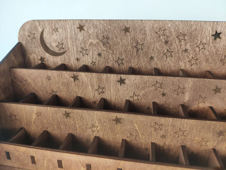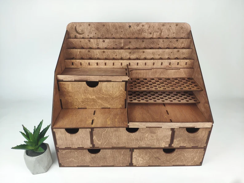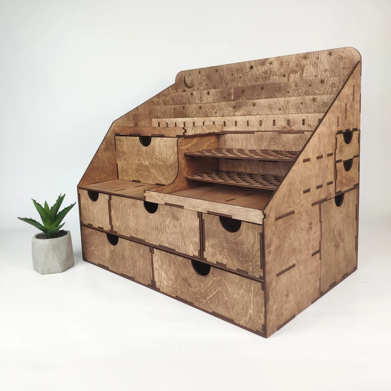 This organizer can be personalized with acrylic varnish, gray or ginger oil finish, custom decoupage, or engraving – just choose your preferred style in the options menu.